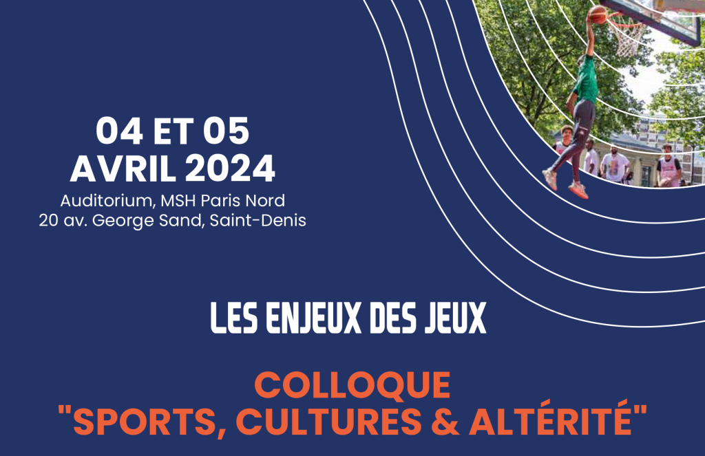Dans le prolongement du congrès « Les enjeux des Jeux » de Montpellier (décembre 2022), le Réseau national des Maisons des Sciences de l’Homme (RnMSH) coordonne l’organisation de six colloques thématiques en 2024 autour de l’action scientifique inter-MSH « Sports & Sociétés ». Un premier événement a lieu, à 4 mois des Jeux de Paris 2024, à la MSH Paris Nord de Saint-Denis les 4 et 5 avril 2024. Ce colloque, placé sous le haut patronage du Président de la République, est co-organisé par trois MSH (Paris Nord, Mondes et Paris Saclay) et le Conseil départemental de la Seine-Saint-Denis. Soutenu par Paris 2024, il s’inscrit dans la programmation de la Semaine Olympique et Paralympique 2024.