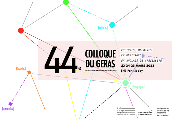 Le quarante-quatrième colloque du GERAS (Groupe d’Étude et de Recherche en Anglais de Spécialité) a lieu à l’ENS Paris-Saclay du 23 (9h) au 25 mars 2023 (12h30).
