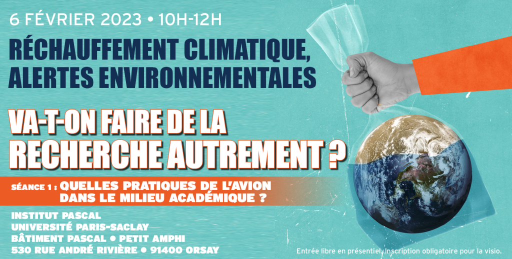 La première séance du séminaire « Réchauffement climatique, alertes environnementales : va-t-on faire de la recherche autrement ? » a lieu le 6 février 2023 de 10h à 12h dans le petit amphithéâtre de l’Institut Pascal. Elle porte sur le thème :