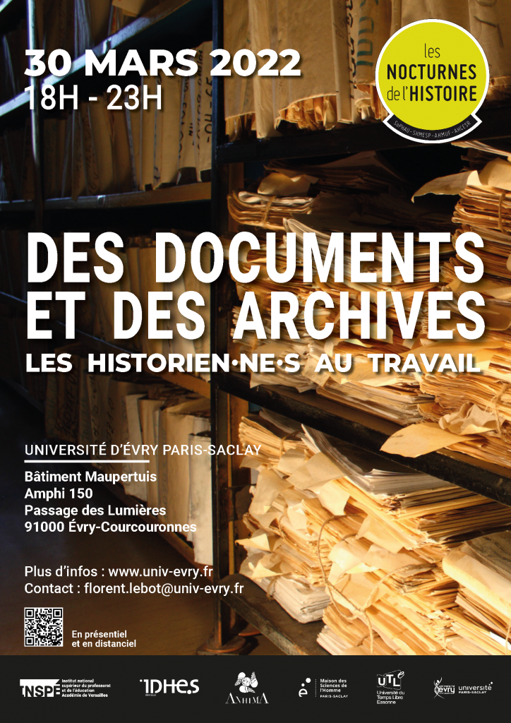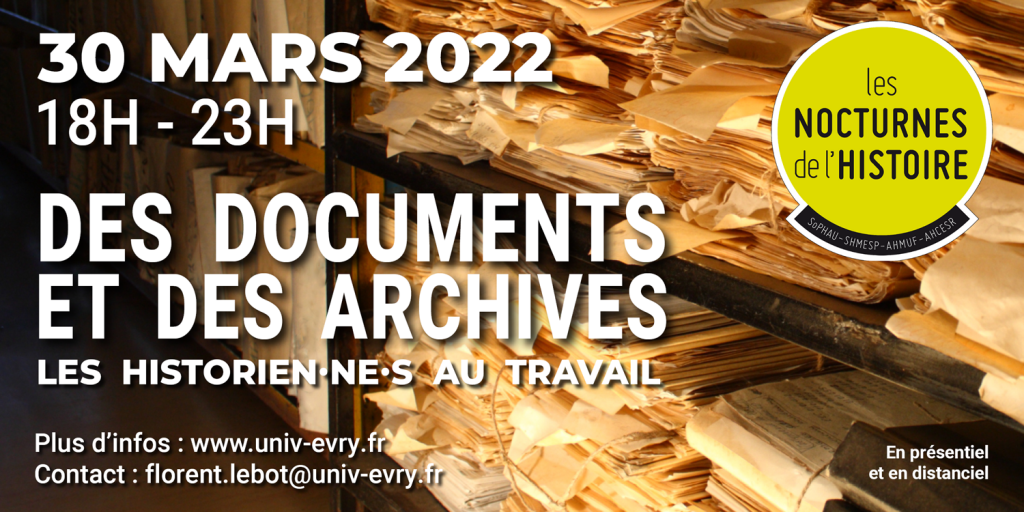 Nous mettrons en valeur ce dialogue avec la présence exceptionnelle de Yann Potin, médiéviste, archiviste-Paléographe (Archives nationales) et d’archivistes travaillant de manière privilégiée avec l’équipe d’Évry (Mondes du travail et archives d’entreprises).