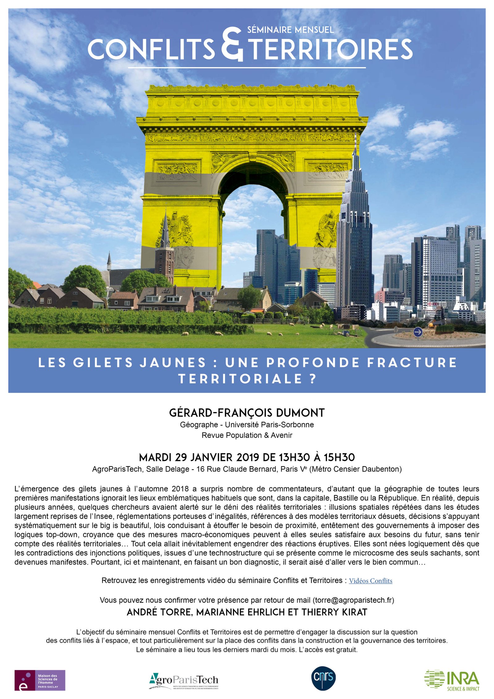 L’objectif du séminaire mensuel Conflits et Territoires est de permettre de permettre la discussion la plus large (pluridisciplinaire et en interface avec la société civile) sur la question des conflits liés à l’espace, et tout particulièrement sur la place des conflits dans la construction et la gouvernance des territoires.