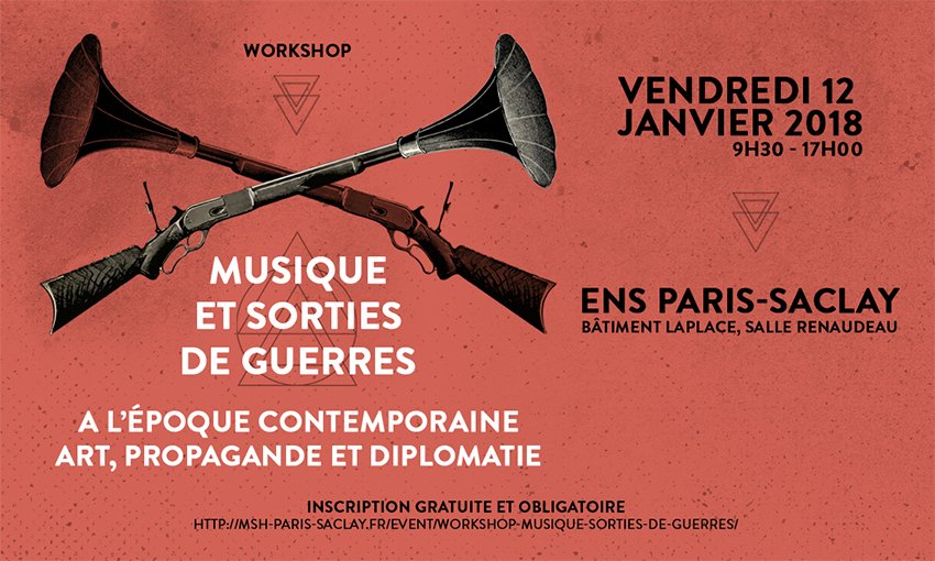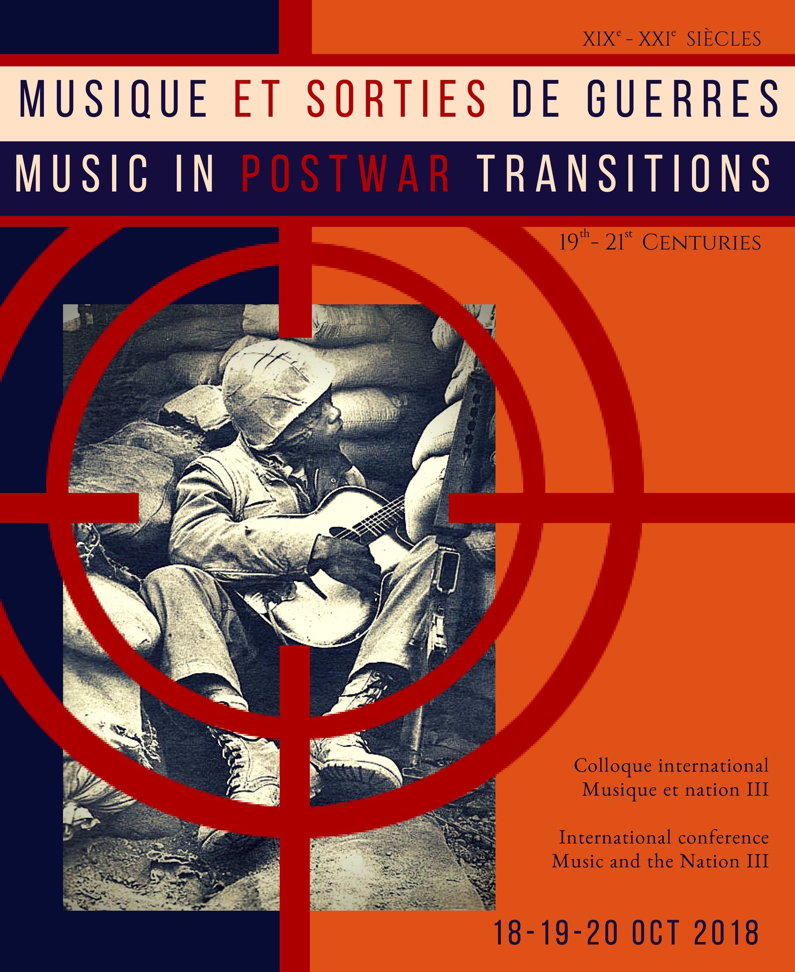 Le colloque « Musique et sorties de guerres (XIXe-XXIe siècles) » est organisé conjointement par l’Équipe Musique en France 1870-1950 (ÉMF) de l’Observatoire interdisciplinaire de création et de recherche en musique (OICRM) et par le réseau international de recherche « Musique et nation », qui regroupe des historiens et des musicologues de l’Université Paris-Saclay (laboratoire Synergies Langues, Arts, Musique de l’Université d’Évry-Val d’Essonne et Centre d’Histoire Culturelle des Sociétés Contemporaines de l’Université de Versailles Saint-Quentin-en-Yvelines) et du Royal Northern College of Music de Manchester.