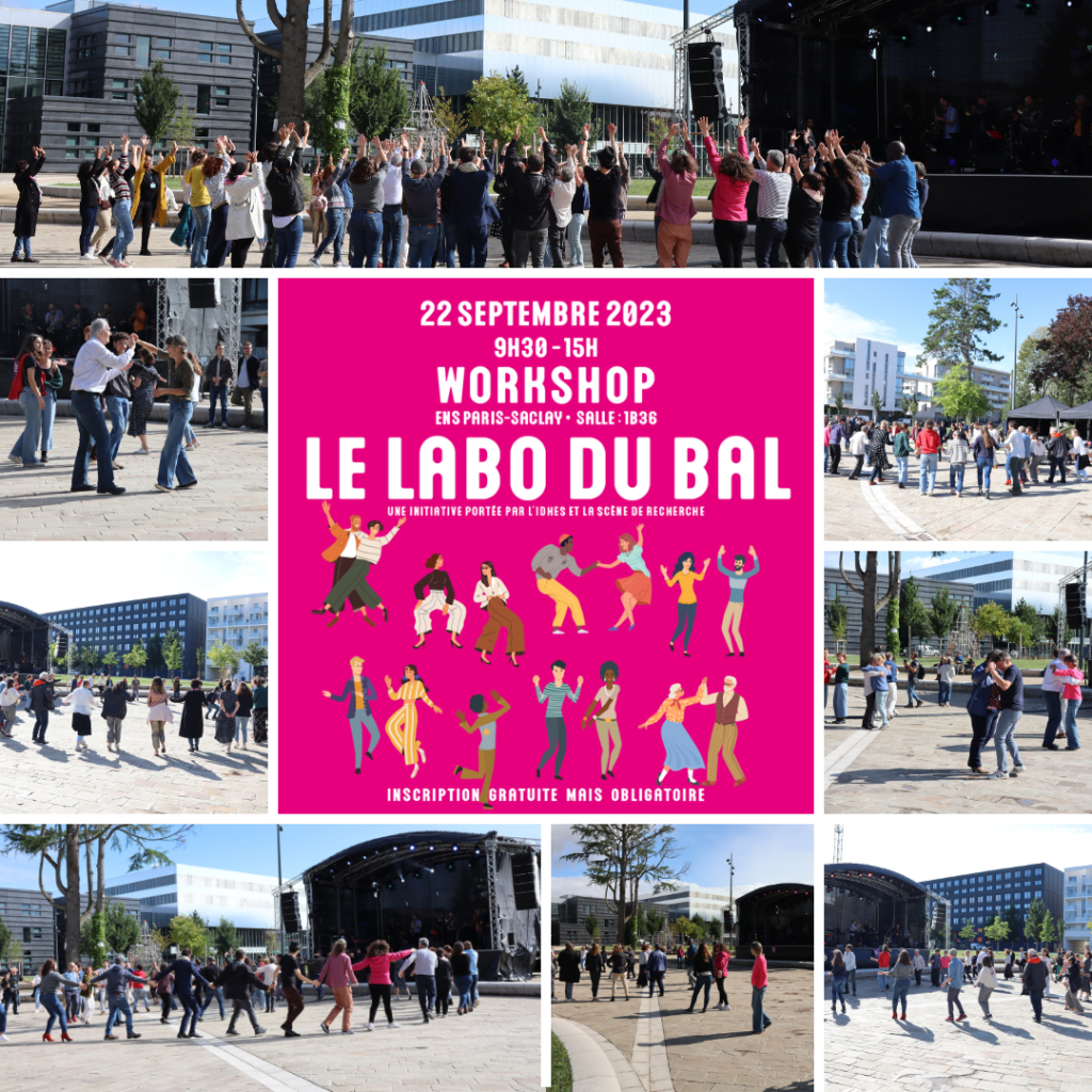 Le vendredi 22 septembre avait lieu sur le plateau de Saclay (quartier du Moulon) un bal organisé par la Scène de recherche (ENS Paris-Saclay), une belle expérience conviviale aux tons lyriques. Le bal a pu être abordé du point de vue de la sociologie le matin grâce à un workshop soutenu par la MSH Paris-Saclay et l’IDHES. Et mis en pratique l’après-midi dans un moment où l’ensemble du personnel de l’ENS Paris-Saclay était convié. Le bal s’est poursuivi le soir pour tout public et tous âges confondus…