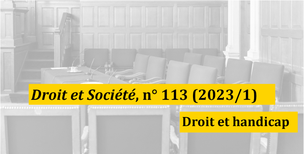 Le numéro 113 (2023/1) de Droit et Société est constitué d’un dossier thématique intitulé « Droit et handicap », d’un hommage à Lauren B. Edelman, de trois articles en rubrique Études, et d’un texte d’Agostino Carrino traduit de l’italien.