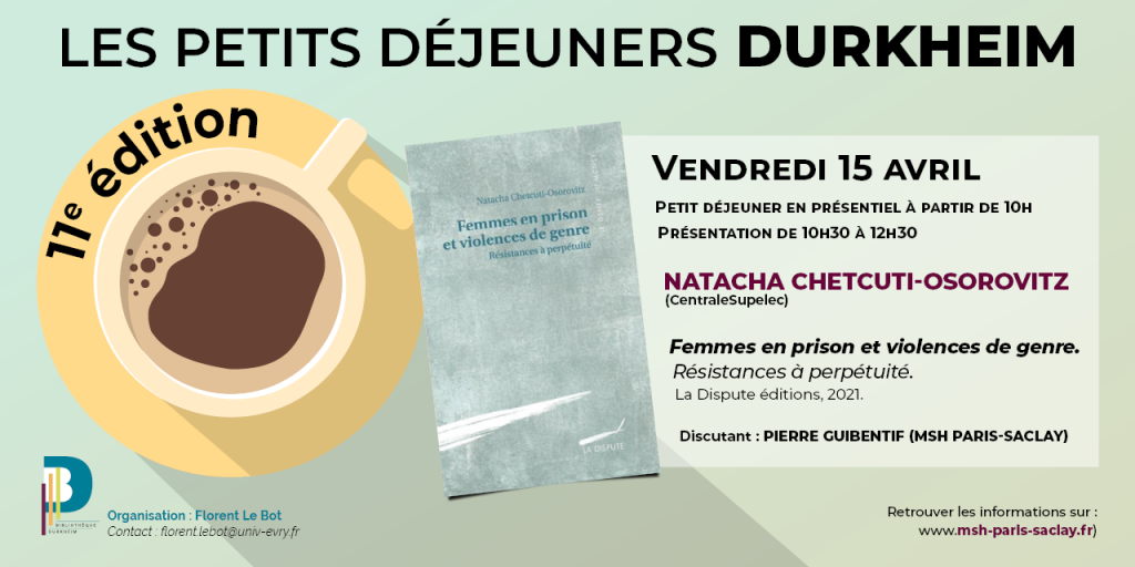 La 4e séance de la saison 2022 des Petits déjeuners Durkheim, soutenus par la MSH Paris-Saclay, aura lieu vendredi 15 avril 2022 en présentiel à partir de 10h et en distanciel à partir de 10h30.