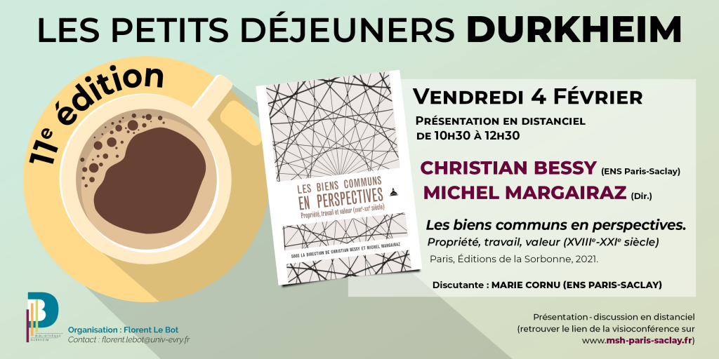 La deuxième séance de la saison 2022 des Petits déjeuners Durkheim, soutenus par la MSH Paris-Saclay, aura lieu vendredi 4 février 2022 en distanciel à partir de 10h30.