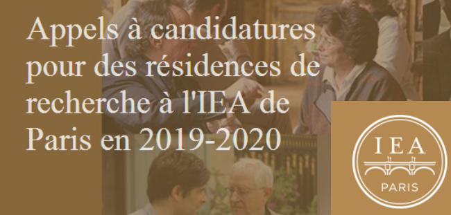 Appels à candidatures pour des résidences de recherche en 2019-2020 – IEA de Paris – 3/04/2018
