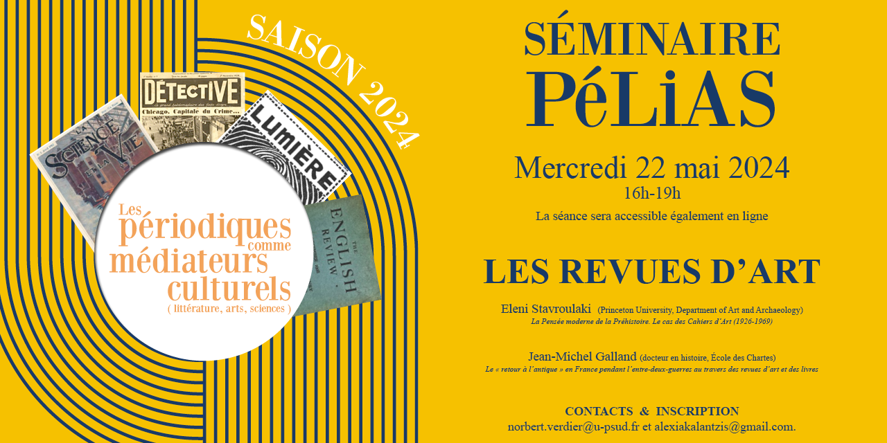 Séminaire PéLiAS – Les périodiques comme médiateurs culturels – Séance 2 : les revues d’art 22 mai 2024 CONSULTER LA SUITE »