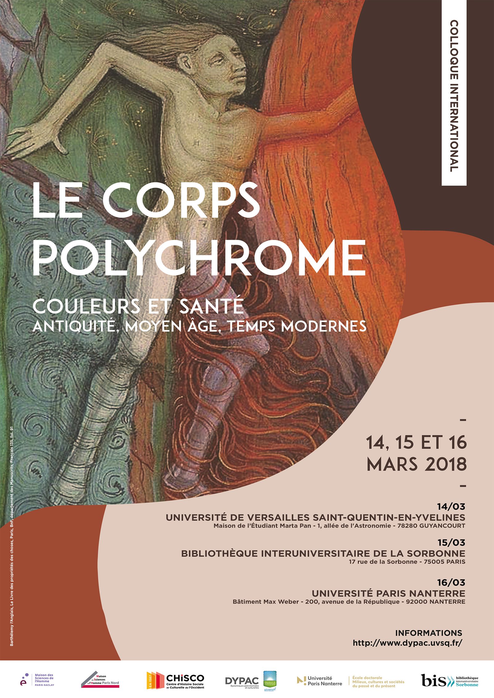 Suite au colloque international (mars 2018) soutenu par la MSH Paris-Saclay, est paru chez L’Harmattan : LE CORPS POLYCHROME COULEURS ET SANTÉ Antiquité, Moyen Âge,